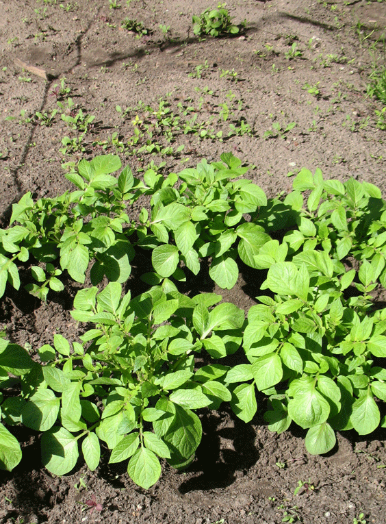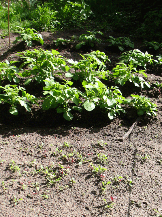 Eindeutig vorn in unserem Kartoffelbeet liegt der Reichskanzler, unsere einzige späte Sorte, dicht gefolgt von Linda, mittelfrüh.