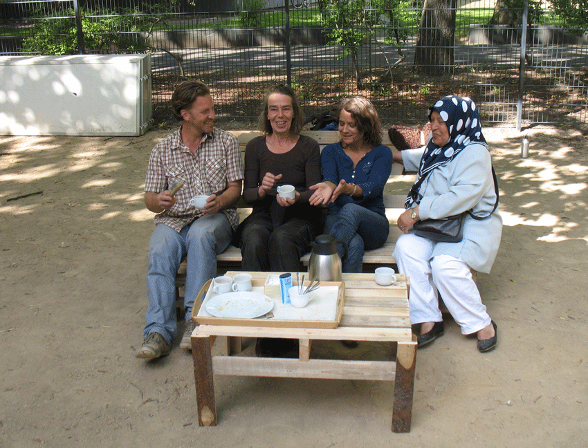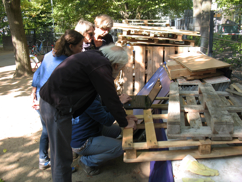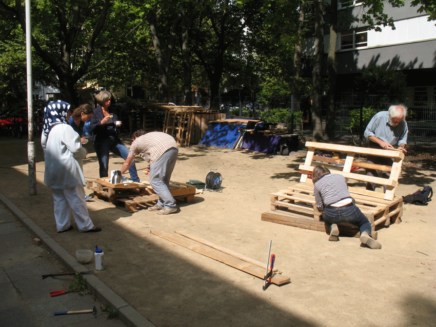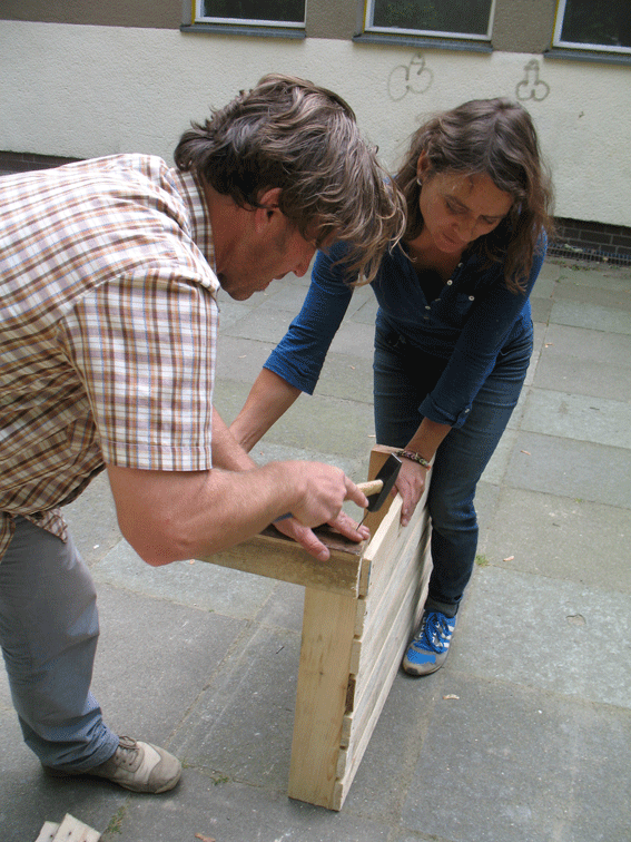 Und weiter mit Sägen, Schmirgeln, Hämmern, Schrauben, gestärkt durch Kaffee und Kuchen aus dem Nachbarschaftstreff.
