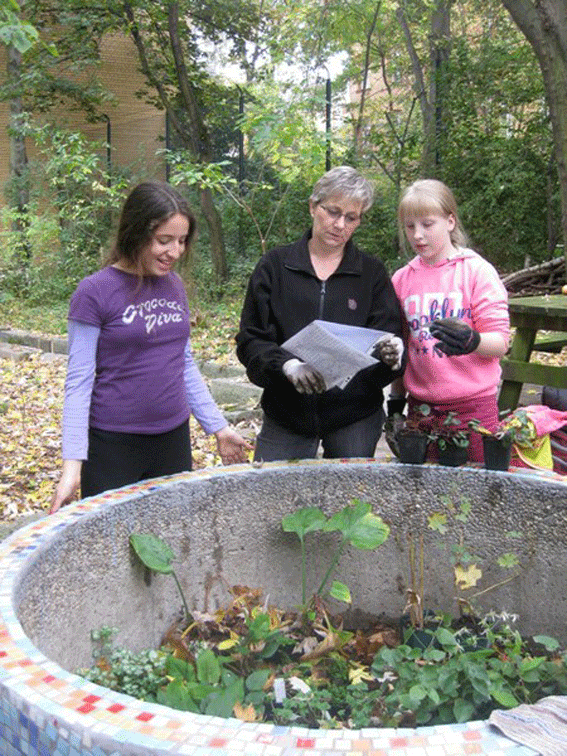 Claudia Schaube, durchführende Pädagogin der Garten-AG, verglich gemeinsam mit den Schüler_innen Plan und Realität.