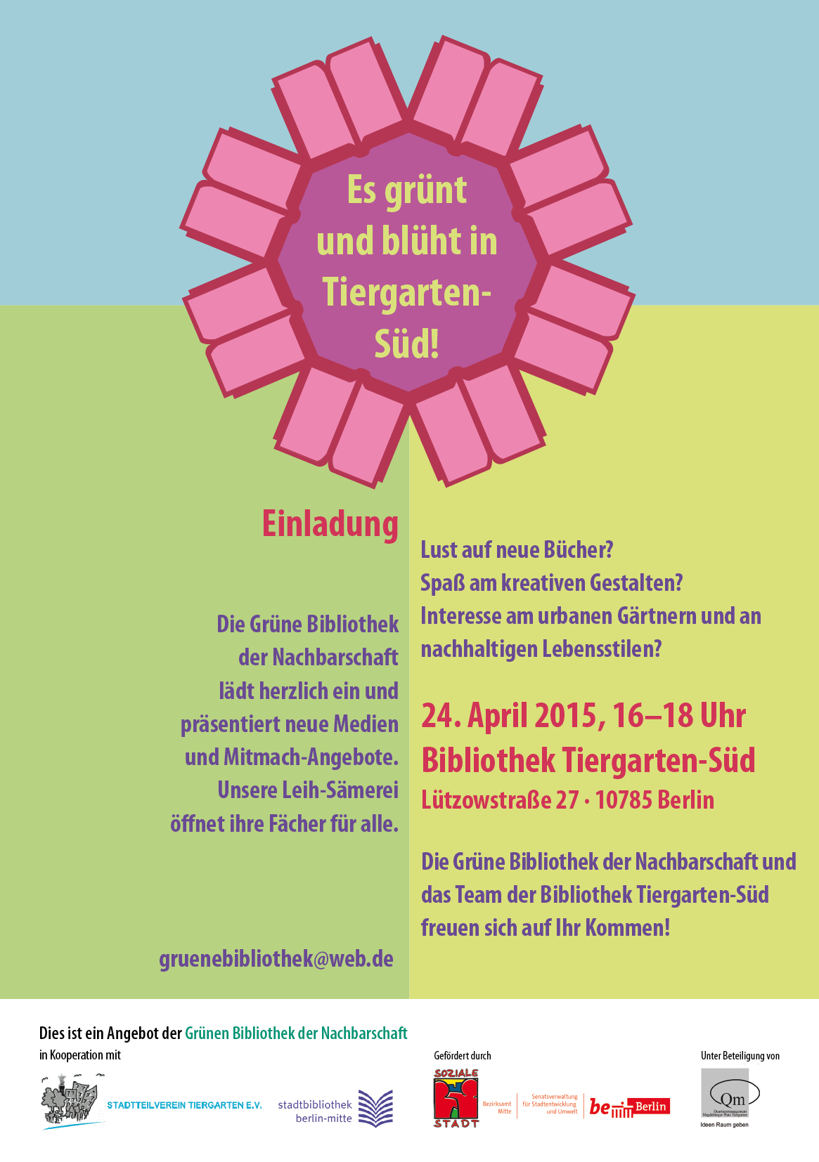 Die Grüne Bibliothek der Nachbarschaft und das Team der Biblitothek Tiergarten-Süd freuen sich auf Ihr Kommen!