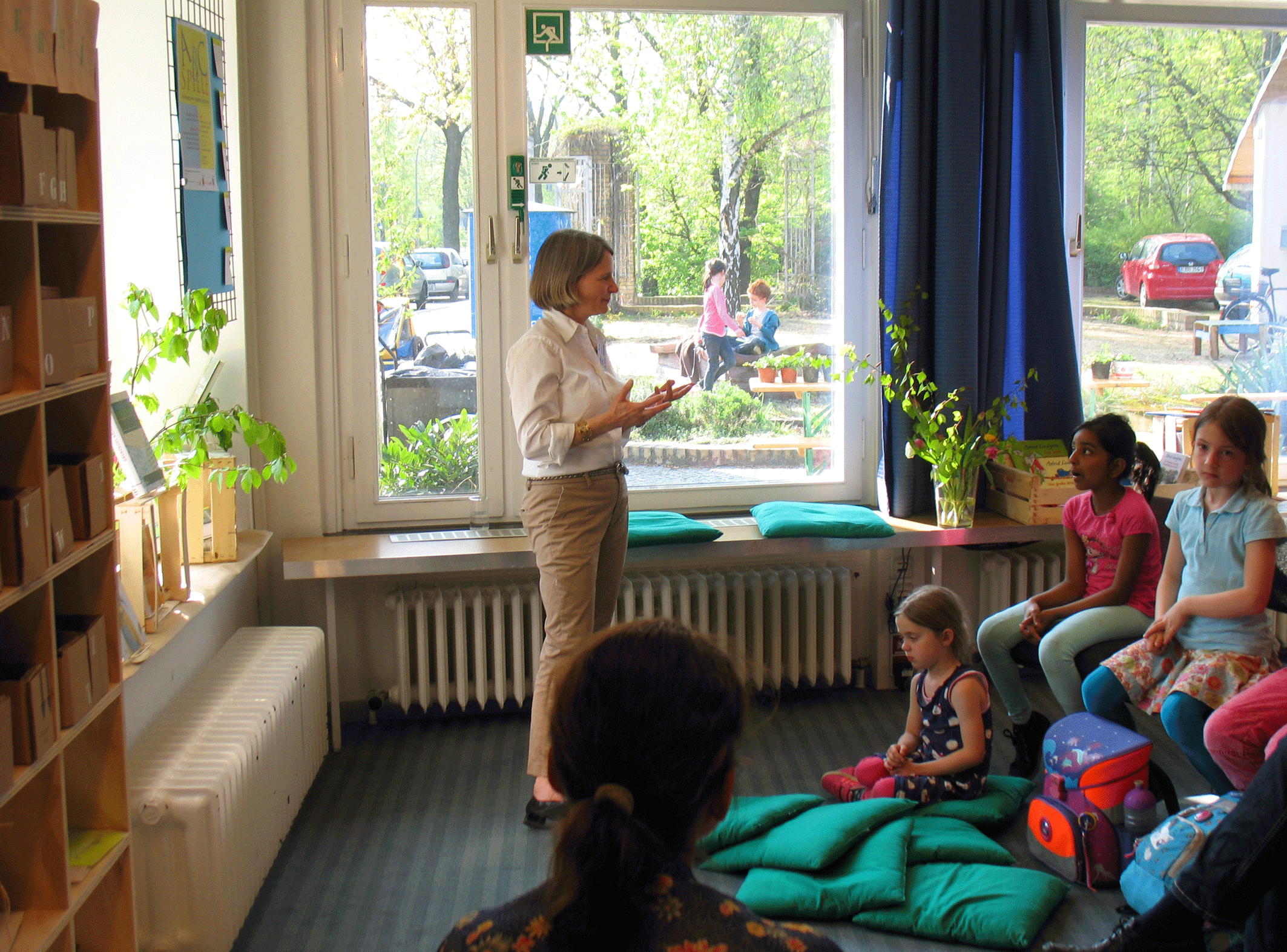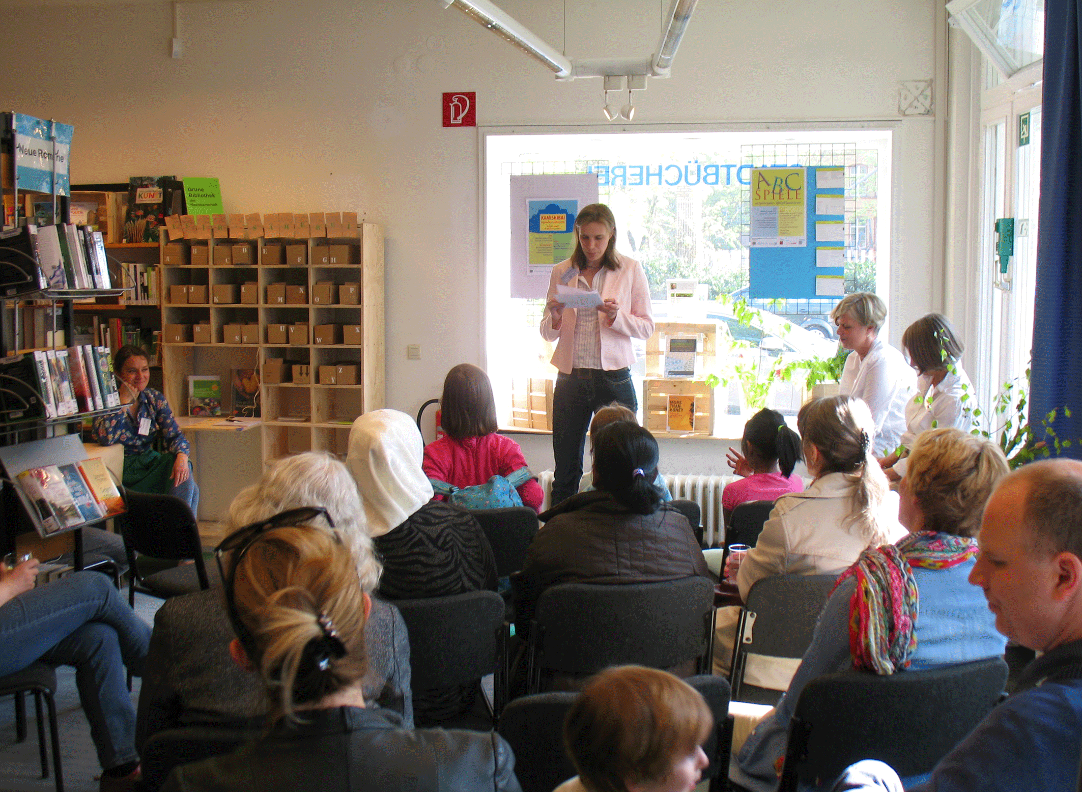 Frau Dr. Seifert, neue bibliothekarische Fachkraft im Kiez, eröffnete den Nachmittag mit einer kleinen Ansprache vor interessierten Publikum nicht nur aus der Nachbarschaft.
