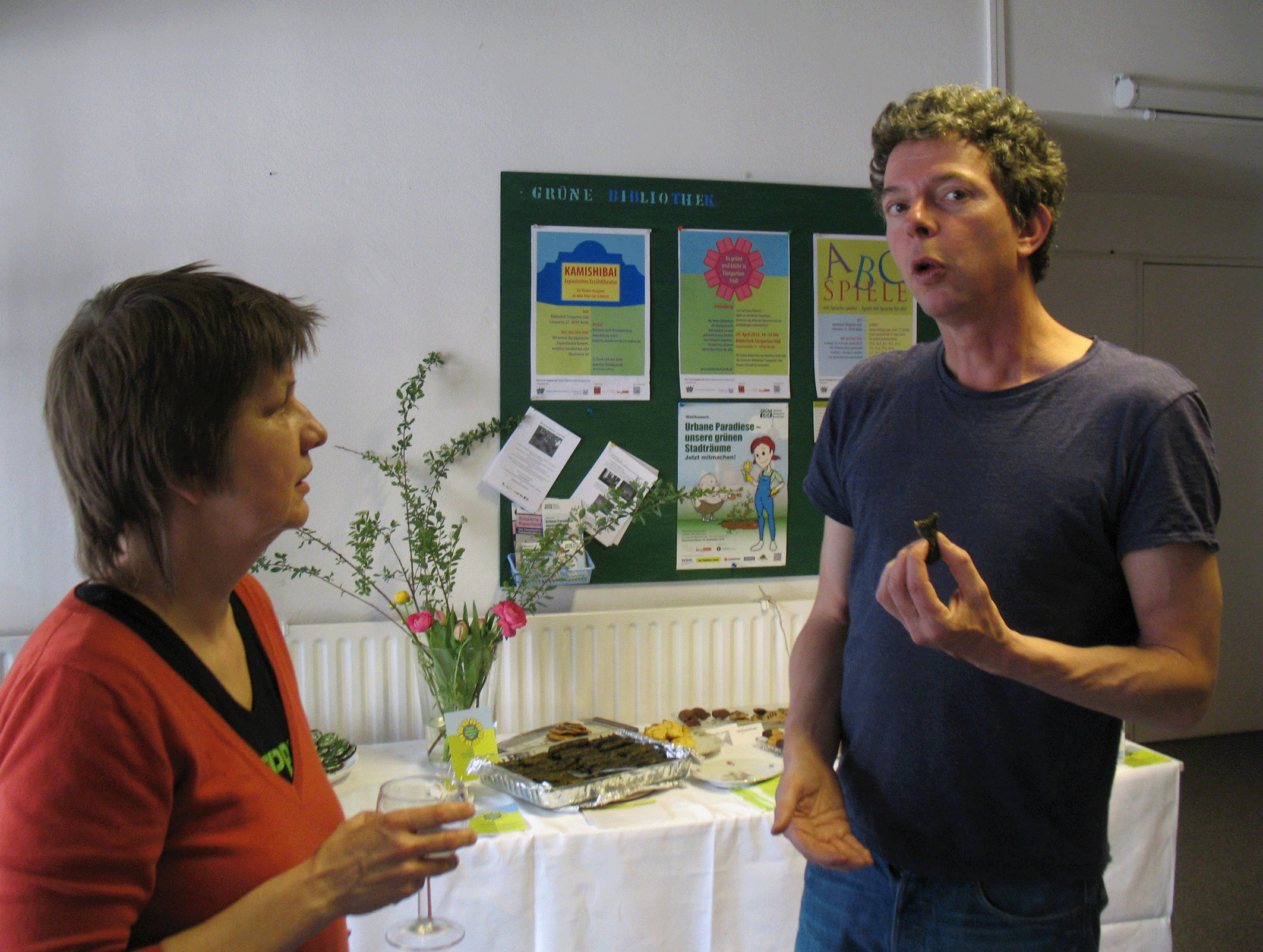 Veröffentlicht: April 28, 2015 Abgelegt unter: Die Grüne Bibliothek | Tags: Bibliothek Tiergarten, Buch und Garten, Garten in der Stadt, Gemeinschaftsgarten, Grüne Bibliothek, Leih-Sämerei, Nachhaltigkeit, Saatgut, Urbanes Gärtnern Hinterlasse einen KommentarAm 24. April präsentierten Mitglieder der IG-Bibliothek gemeinsam mit dem Amt für Weiterbildung und Kultur, Fachbereich Bibliotheken und dem Stadtteilverein Tiergarten e.V. ihre ‚Grüne Bibliothek der Nachbarschaft‘.