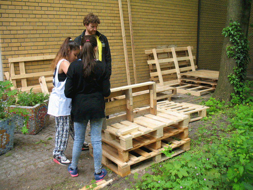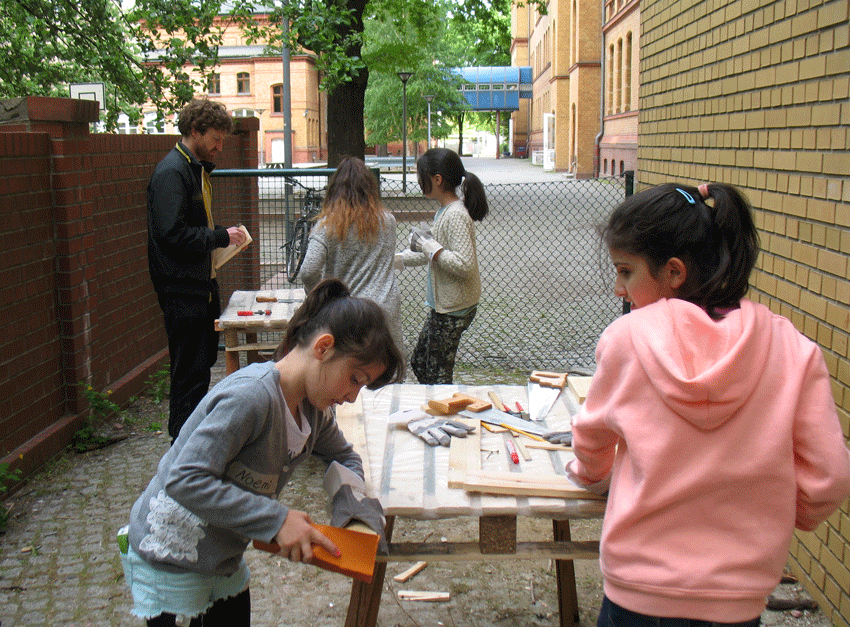Veröffentlicht: Mai 24, 2015 Abgelegt unter: Workshops | Tags: Allegro-Grundschule, DIY, Garten in der Stadt, Gärtnern mit Kindern, Gemeinschaftsgarten, Nachhaltigkeit, Palettenmöbelbau, Selbermachen, Stadtgarten, Werken mit Kindern Hinterlasse einen KommentarWeiter geht’s mit den Verschönerungen im Schulgarten in der Allegro-Grundschule, diesmal mit Schülern der Klasse 4b.