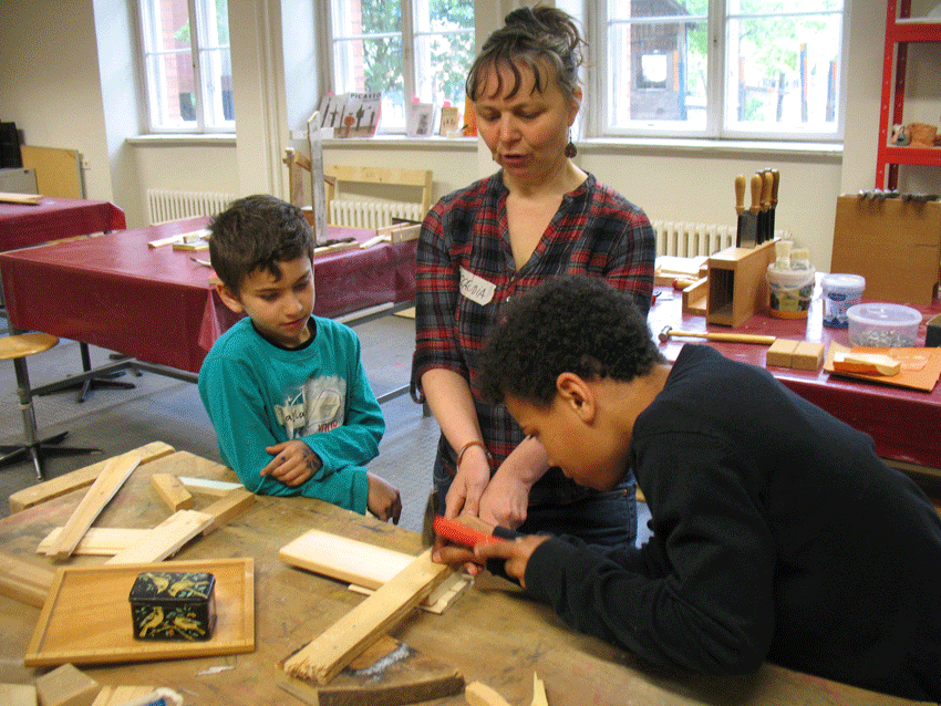 Die sichere Handhabung verschiedener Handwerkstechniken lernen in diesem Workshop auf jeden Fall beide Gruppen und Freude an der eigenen Kreativität und am Selbermachen.