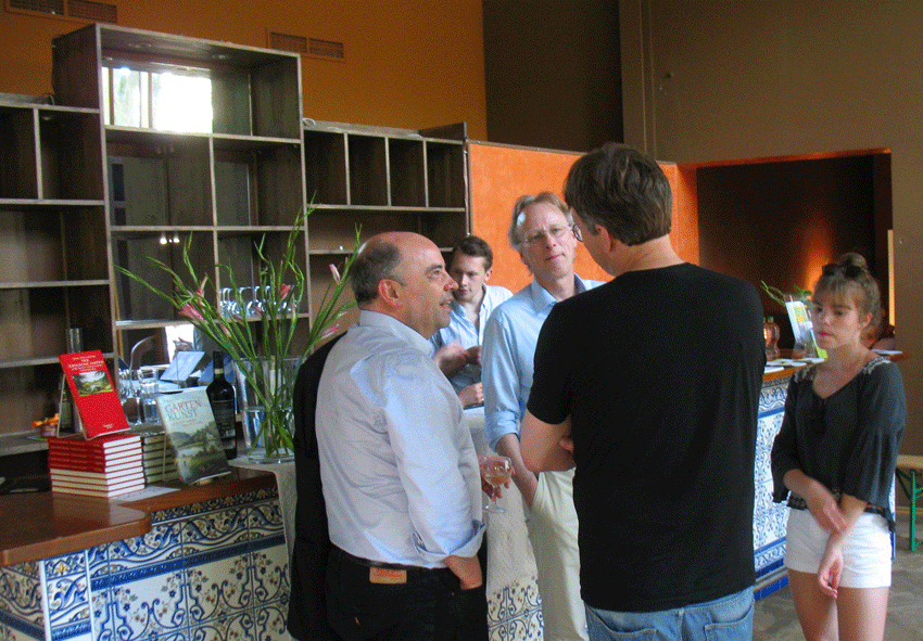 Bei vollmundigen Weinen aus der benachbarten Weinhandlung „Les climats“ fand sich nach dem Vortrag genug Raum in entspannter Atmosphäre, um sich mit Hans von Trotha und anderen Gartenbegeisterten über das Gehörte und Gesehene auszutauschen und wer Lust hatte, ist noch mit Julia Westheimer, Gärtnerin im benachbarten Gemeinschaftsgarten wachsenlassen, zu einer Führung durch das frische Gartengrün gezogen.
