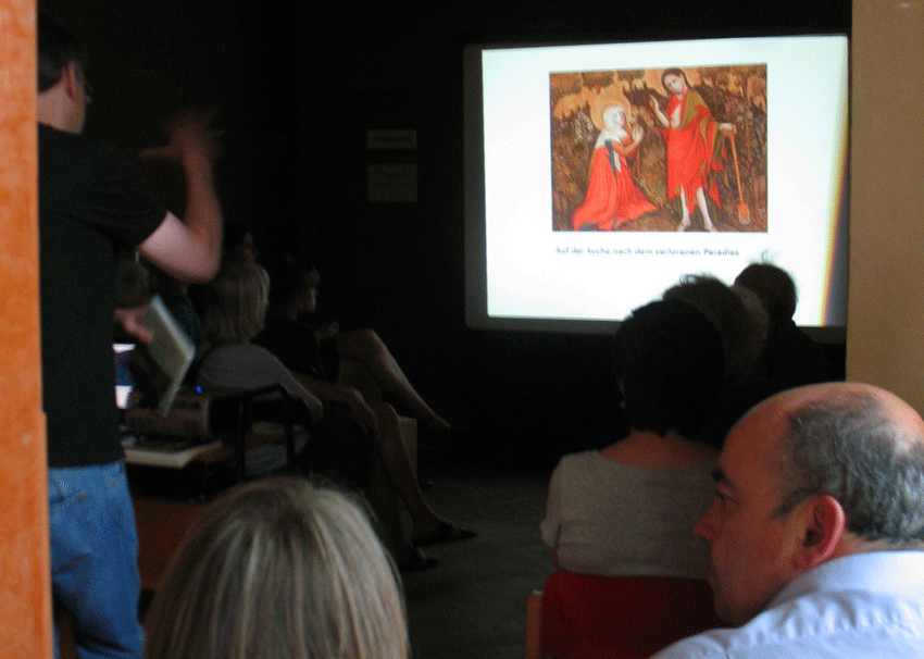 Die Freude über die Erlaubnis dazu von Seiten des Facility Managements des Amts für Weiterbildung Berlin Mitte dazu war groß und sofort organisierte Frau Dorén von der Grünen Bibliothek einen wunderbaren Bildvortag mit dem Publizisten Hans von Trotha.