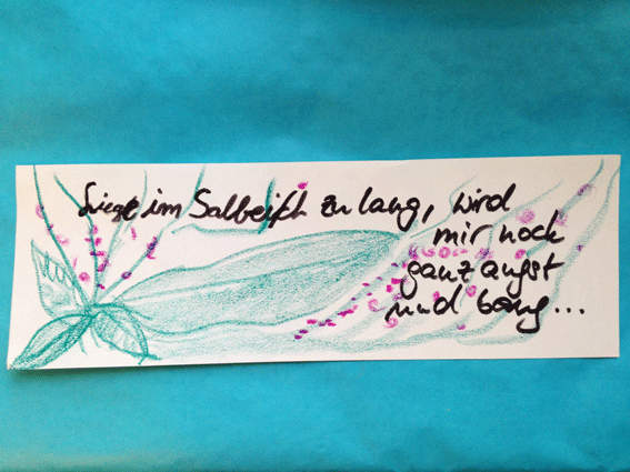 Was für ein Vergnügen, wenn sich die ABC-Spielereien, die ich vorgebe, durch kleine und große Mitspieler weiterentwickeln, verselbständigen und verwandeln und wir alle zu einem anregenden Nachmittag immer wieder gern zusammenkommen.
