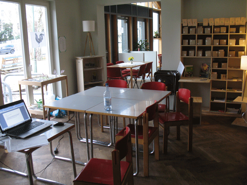 Der Raum der Grünen Bibliothek der Nachbarschaft im Anbau der Stadtbibliothek Tiergarten, Lützowstr. 27, 10785 Berlin kann während der Öffnungszeiten der Bibliothek – falls er nicht gerade für Workshop-Angebote benutzt wird – zukünftig von allen Bibliotheksnutzern zum gemütlichen -grünen- Stöbern, Lesen und Arbeiten genutzt werden.
