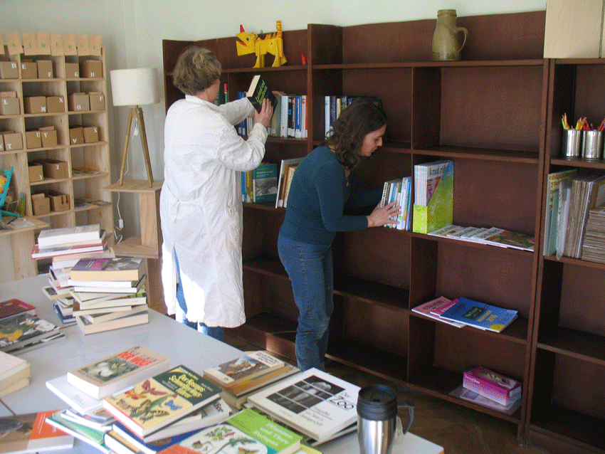 Derweil zogen die ersten Bücher erste Bücher mit den Medienschwerpunkten (urbane) Gärten, Umweltschutz, nachhaltige Lebensstile, DIY/DIT in unserem Bibliotheksraum ein.