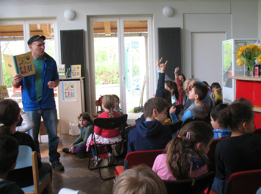Mit viel Charme und Freude am Geschichten-Erzählen fesselte der Kinderbuchautor Groß und Klein und hatte sichtlich genau so viel Spaß wie seine Zuhörer_innen.