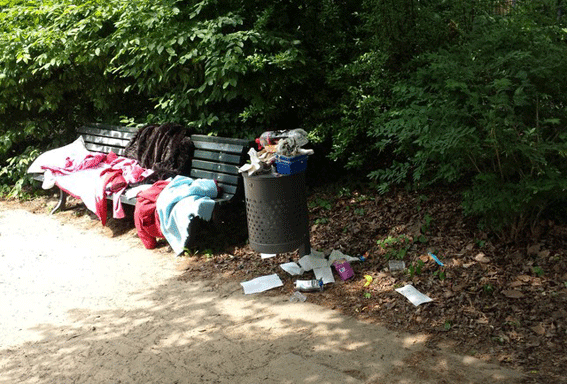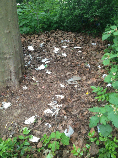 Im Garten selber besteht eher das Problem der massiven Vermüllung durch externe Nutzer: