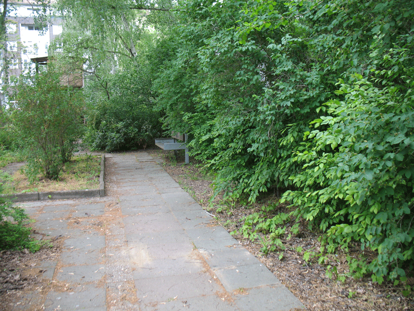 Auch neben dem Anbau der Bibliothek, in welchem sich aktuell der neue Nachbarschaftstreff und die Grüne Bibliothek der Nachbarschaft befinden, wird von den Mitarbeiter_innen vor Ort immer wieder gegen die Hinterlassenschaften des regen Prostitutionsvollzugs gekämpft.
