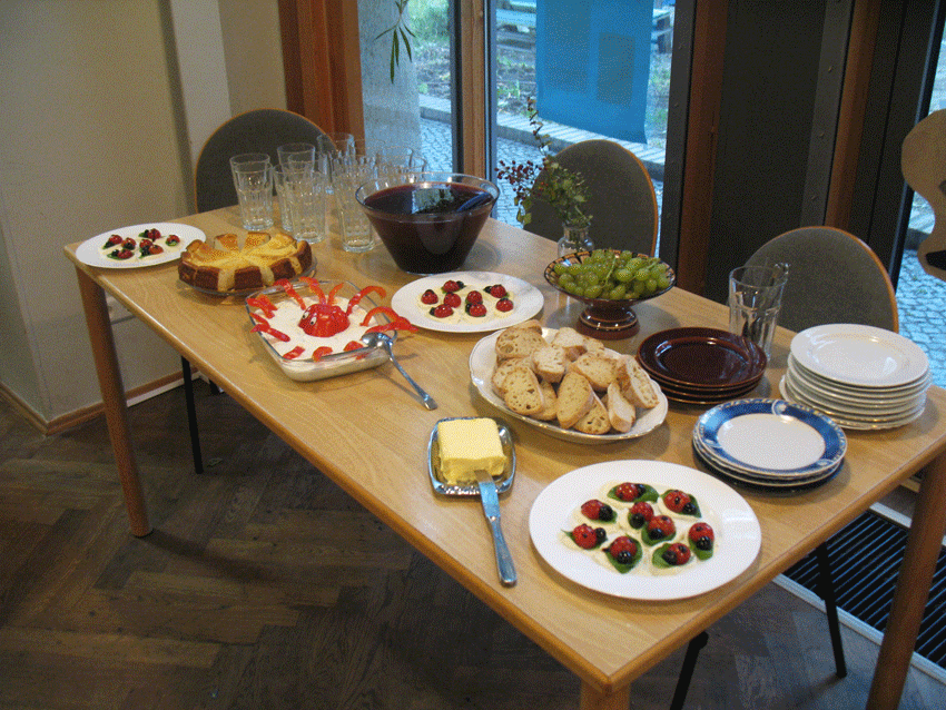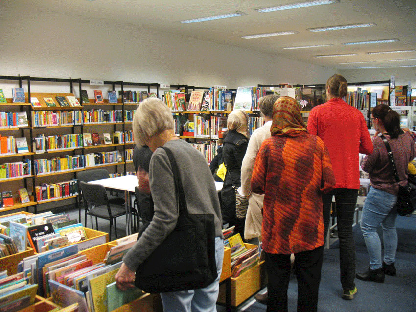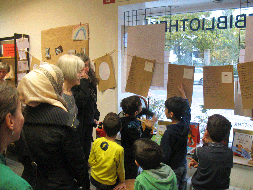 Alle haben sich über die zahlreichen Besucher bei unserer kleinen Werkschau gefreut, stolz und souverän führten die jungen Gastgeber durch die Bibliothek eröffneten anschließend im Nachbarschaftstreff das – themengerecht gestaltete – Buffet, bei dem alle Besucher noch für eine Weile zum gemütlichen Gespräch beisammen saßen.