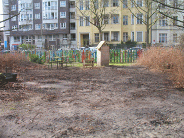 Am 2. Mai 2017 sollen endlich die Bauarbeiten für das Kiez Zentrum Villa Lützow beginnen. Leider geht die Baustellenzufahrt genau durch unseren Garten.
