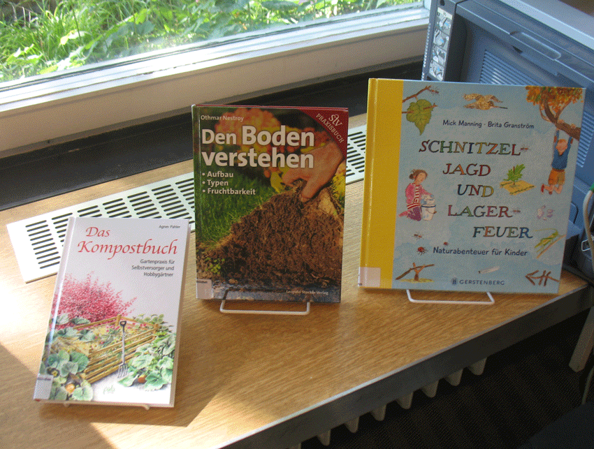 Die Auswahl unserer Medien ist innerhalb des Schwerpunktes breit gefächert: Hier finden Gartenbesitzer_innen ebenso Literatur wie Balkongärtner_innen und urban gardeners, Bücher mit Anregungen zu Unternehmungen, Naturbastelarbeiten, Do-it-yourself-Ideen mit (und ohne) Kinder haben hier ebenso ihren Platz wie Literatur zu nachhaltigen Lebensführungen aus den Bereichen Wirtschaft, Soziologie und anderen gesellschaftsrelevanten Bereichen.
