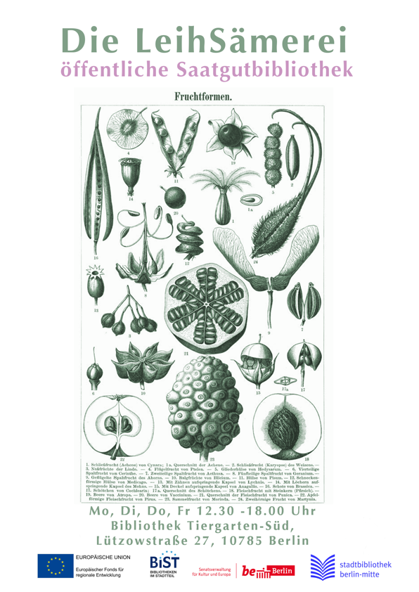 Veröffentlicht: März 4, 2018 Abgelegt unter: Die Grüne Bibliothek | Tags: Agrarindustrie, Artenvielfalt, Ökologie, Bibliothek Tiergarten-Süd, nachhaltiges Wirtschaften, Nachhaltigkeit, Saatgut, Saatgut-Tauschbörse, Urbanes Gärtnern, Wachsenlassen Hinterlasse einen KommentarStandortangepasstes und samenfestes Saatgut in Berlin: