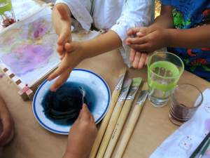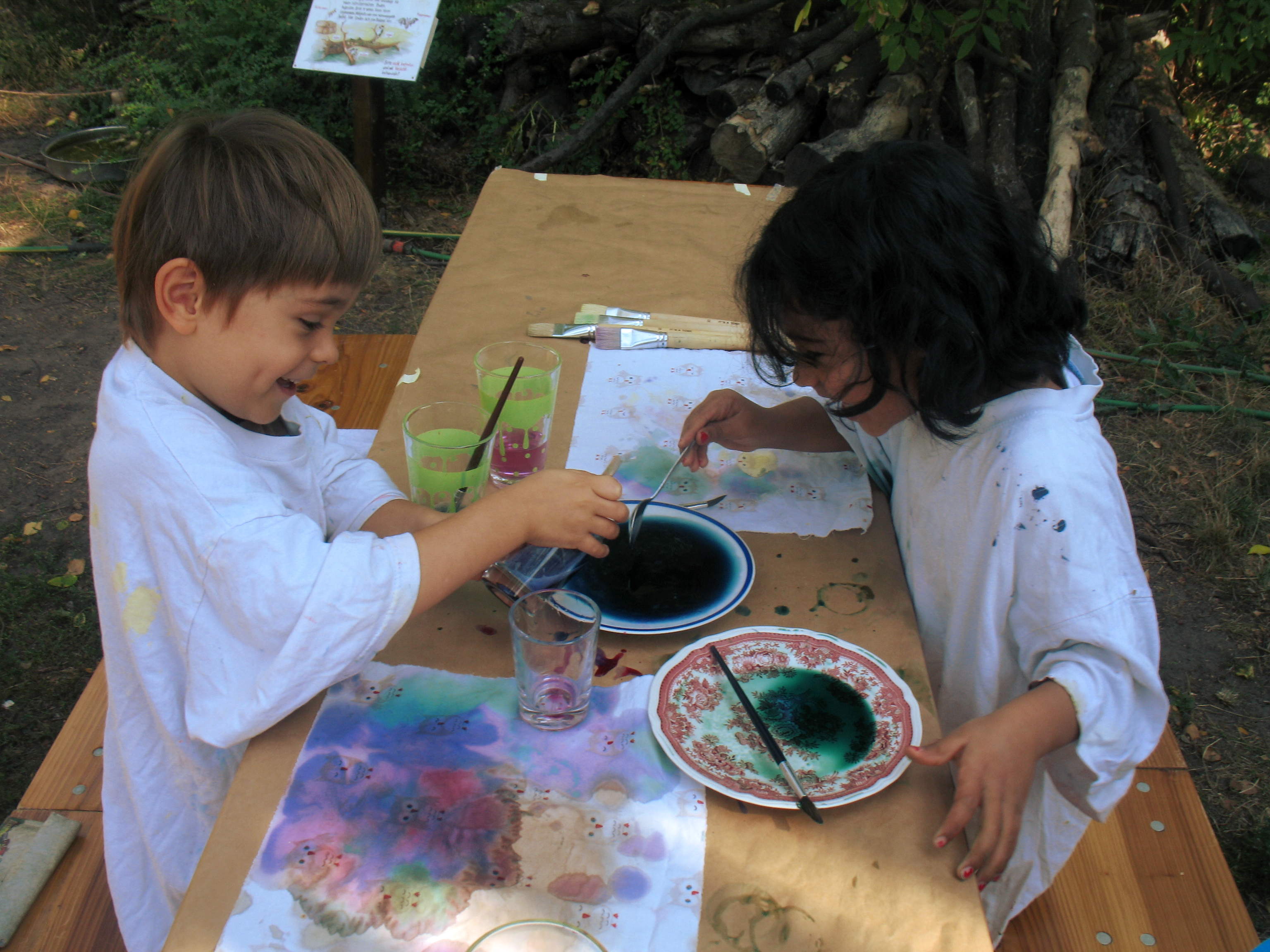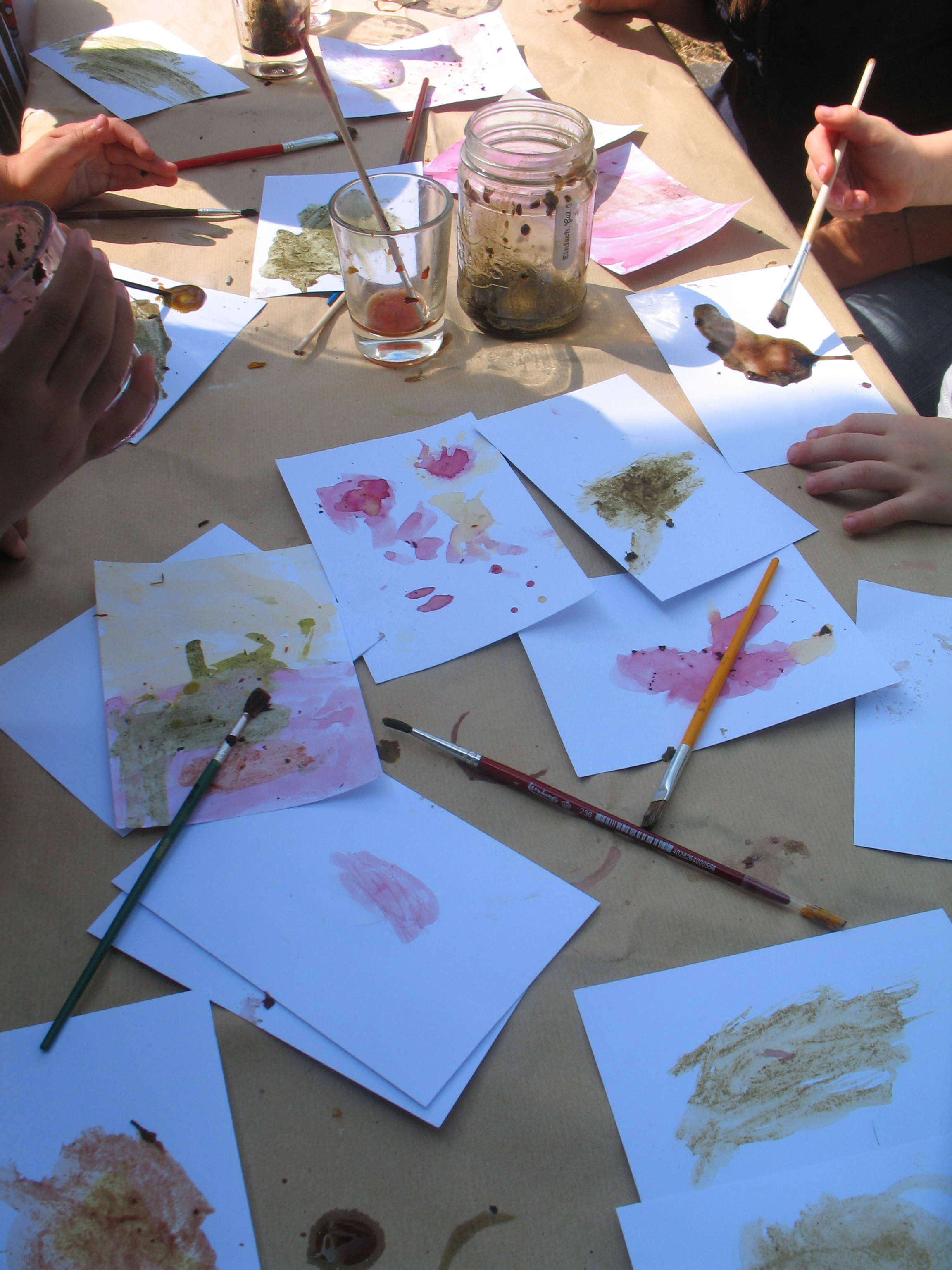 Die Farben aus der Natur haben ihren ganz eigenen Reiz, der auch schnell auf die Kinder übersprang und es wurde mit Leidenschaft gemalt (und experimentiert!)