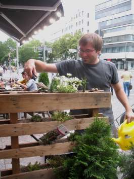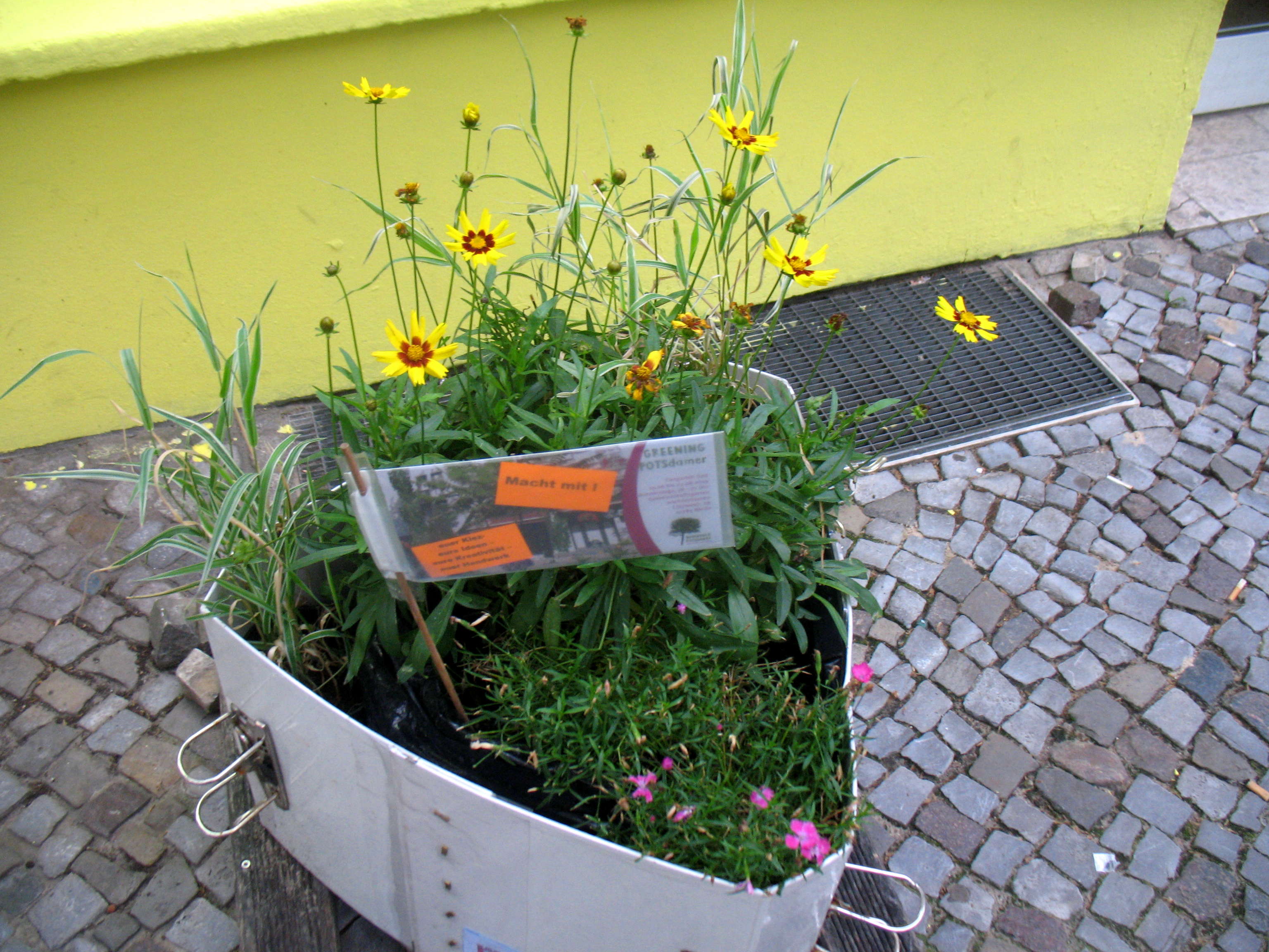 Bei dem Projekt GREENING POTSdamer, initiiert von der IG Potsdamer Straße, werden kreative Recycling-Töpfe für den öffentlichen Raum gestaltet und gebaut, gerne individuell mit den Geschäftinhabern und/oder Anwohnern abgesprochen.