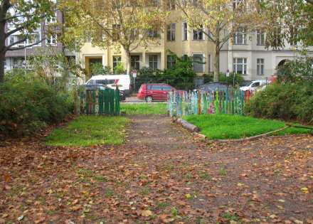 Neuer Eingang zum Gemeinschaftsgarten wachsenlassen vom Kiez Zentrum Villa Lützow kommend.