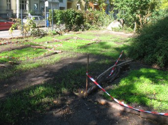 Veröffentlicht: Oktober 31, 2019 Abgelegt unter: Gemeinschaftsgarten | Tags: Ökologie, Boden, Garten in der Stadt, Gemeinschaftsgarten wachsenlassen, nachhaltiges Wirtschaften, Urbanes Gärtnern Hinterlasse einen KommentarÜber Jahre hinweg mussten wir, bedingt durch die Baustellenzufahrt Villa Lützow , auf einen Teil unseres Gartens verzichten – und dazu noch auf einen sehr sonnigen Bereich, in dem wir Gemüsebeete angelegt hatten. (Wirklich leidend hatten wir damals in kürzester Zeit umgesetzt, was umzusetzen war an Stauden, Gehölzen, Insektenhotel, um zu retten, was zu retten war…)