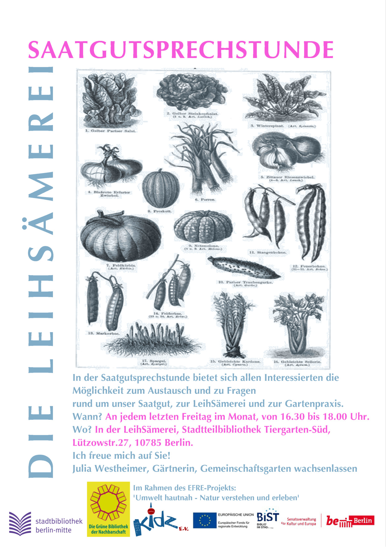 Veröffentlicht: Februar 15, 2020 Abgelegt unter: Die Grüne Bibliothek | Tags: Artenvielfalt, Ökologie, Bibliothek Tiergarten-Süd, Biodiversität, Gemeinschaftsgarten wachsenlassen, Grüne Bibliothek, nachhaltiges Wirtschaften, Nachhaltigkeit, Saatgut, Wachsenlassen Ein Kommentar