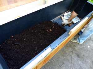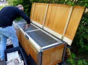 Die Idee war schon lange in der Welt, nun konnte sie endlich realisiert werden: in seiner knapp bemessenen Freizeit hat Arben aus dem Team wachsenlassen geschraubt, gebohrt und gezimmert, damit der sehnlichst gewünschte Wurmkomposter und damit die kleinen Tiere und mit ihnen ‚das scharze Gold‘ in unseren Garten einziehen konnte.