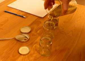 Anschließend in mit heißem Wasser oder im Backofen sterilisierte Gläschen umfüllen – erkalten lassen und fertig ist die wunderbar hautpflegende Salbe!