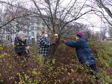 Gehölze werden bei uns zu dieser Jahreszeit nicht ‘auf den Stock gesetzt’ (Rückschnitt bis auf ca. 20 cm über dem Boden).