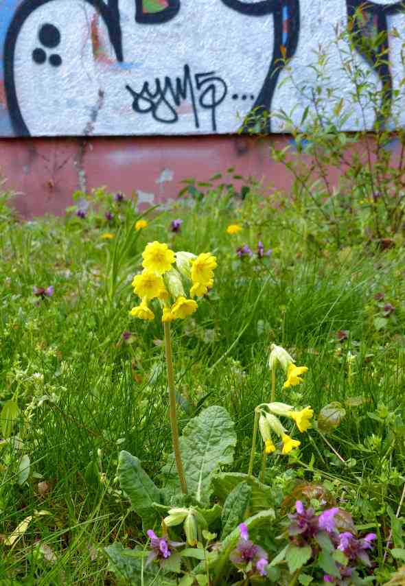 Primula veris am Rande eines Spielplatzes, Schöneberg
