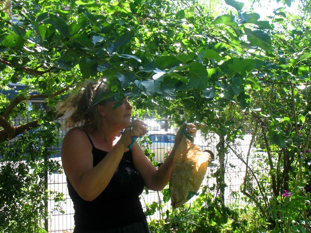 Was das wunderbare daran ist (war?), dass der Baum so nah am Bürgersteig steht, ging uns erst nach Jahren auf, als der Baum seine ersten Früchte trug: