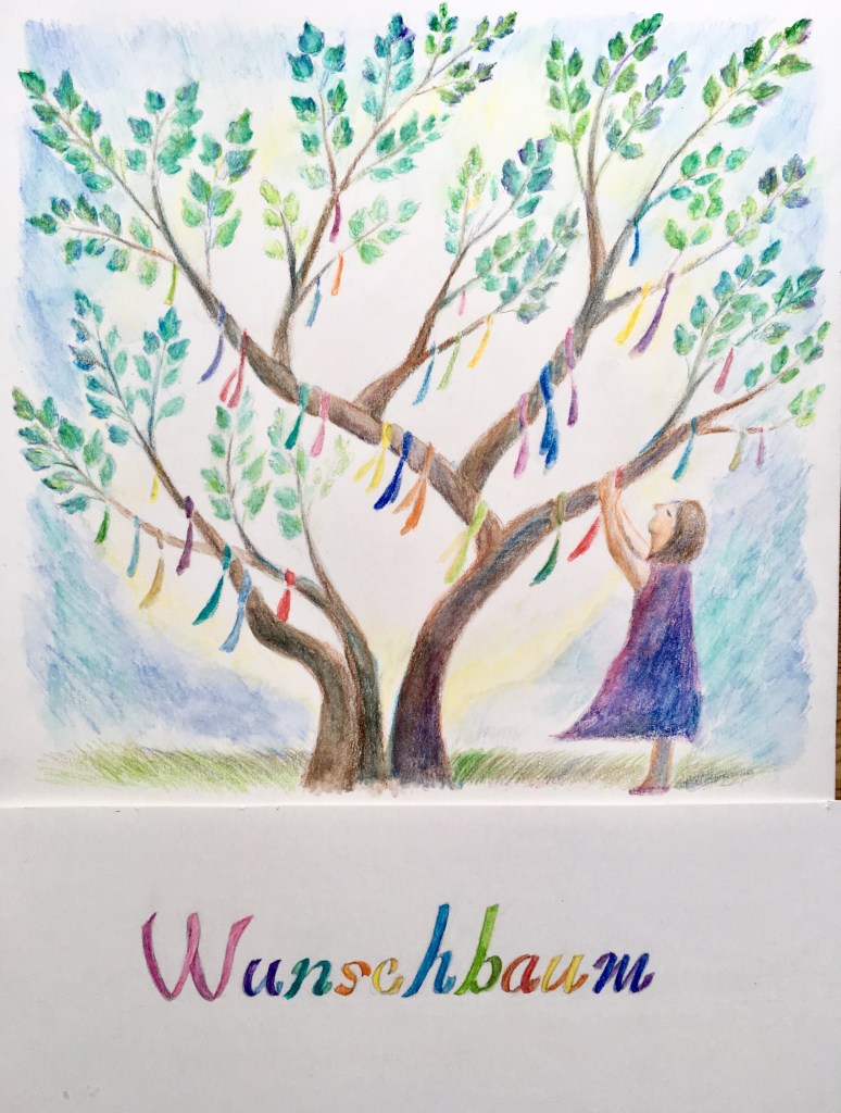 In einem Jahr erstrahlte unser Marus nigra sogar als Wunschbaum. Mit Wünschen beschriftete Stoffbinden konnten an seine Äste gebunden werden und wer weiß, vielleicht sind einige davon in Erfüllung gegangen.