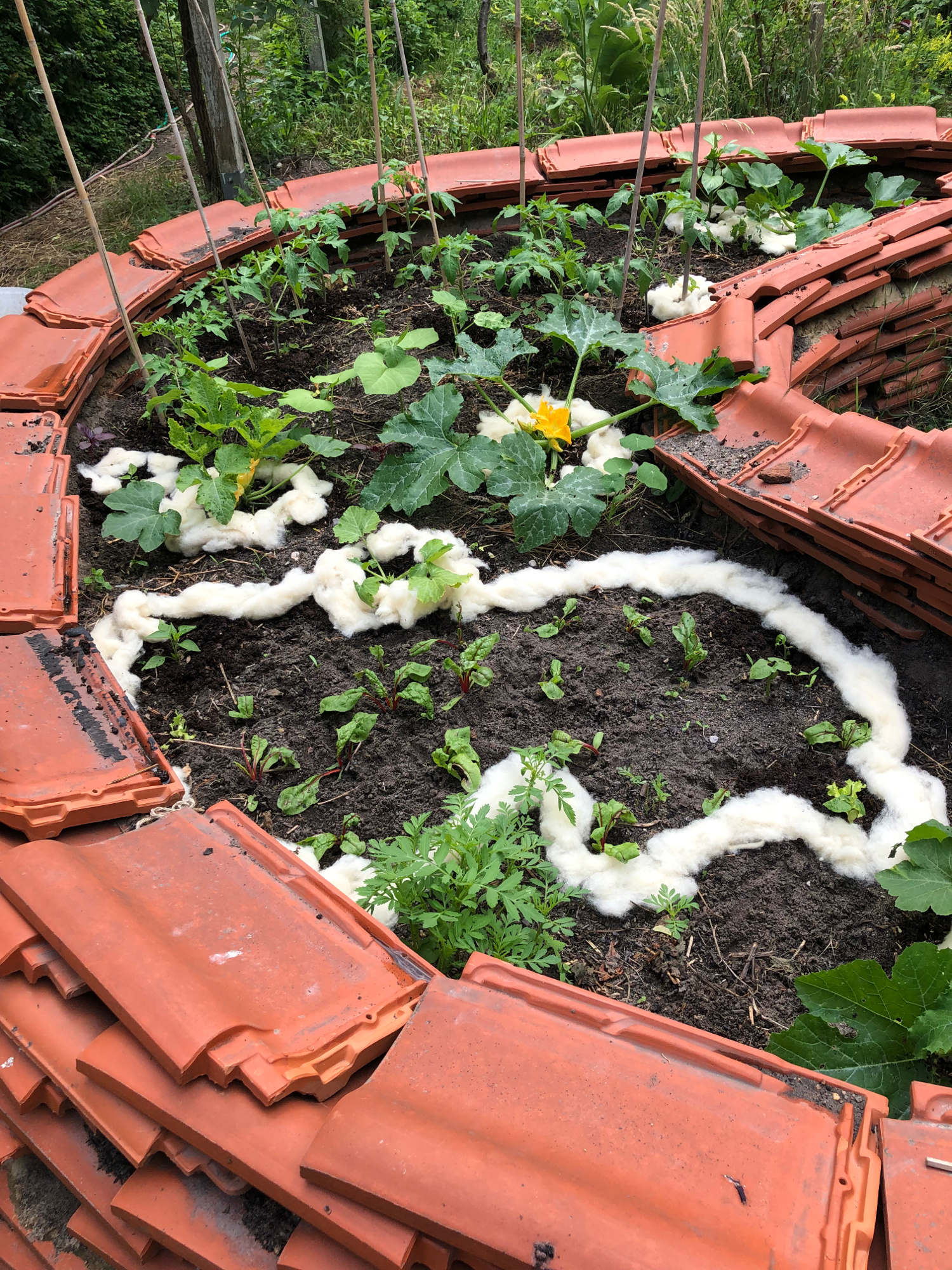 Im letzten Jahr sind bei uns Auberginen, Tomaten und Zucchini wunderbar gewachsen, auch wenn wir, wie so viele andere auch in diesem Jahr, extrem unter den vielen, vielen Schnecken zu leiden hatten. Unsere Salaternte ist so gut wie komplett ausgefallen. Gerettet hat uns am Ende dann wohl die Schaffwolle, die wir ins Beet gestopft habe. Und das Milpabeet musste ohne Bohnen auskommen. Waren es nur noch ‘zwei Schwestern’.