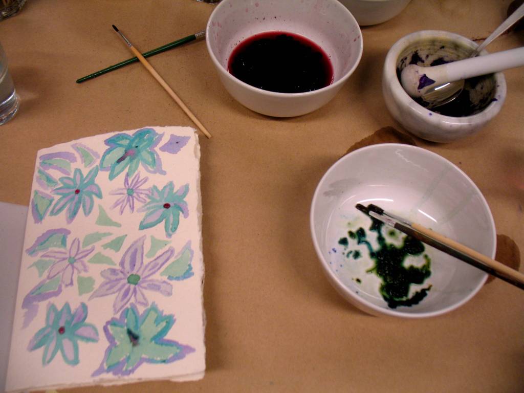 Gestalten von Grußkarten, Weihachtsanhängern und was uns sonst noch alles einfällt mit Färberpflanzen und gepressten Blüten