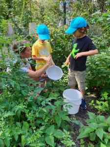 Unsere jüngsten Mitgärtner*innen im Kindergartenalter lassen sich aber nicht lumpen und helfen auch immer eifrig bei Ausaat und Pflege ihrer Beete – es darf nur nicht zu lange dauern.