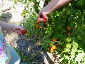 Ach ja, und manch eine*r findet schneiden (mit „so coolen Scheren“) vielleicht sogar noch viel schöner als Tomaten ernten…