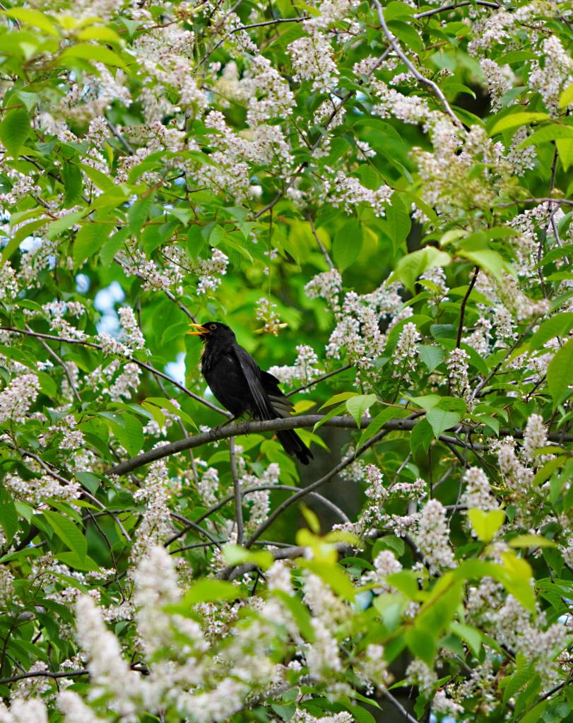 Als Höhepunkt konnten wir eine Amsel dabei beobachten, wie sie im dichten Gehölz einer Hecke auf Augenhöhe ihr Nest baute.
