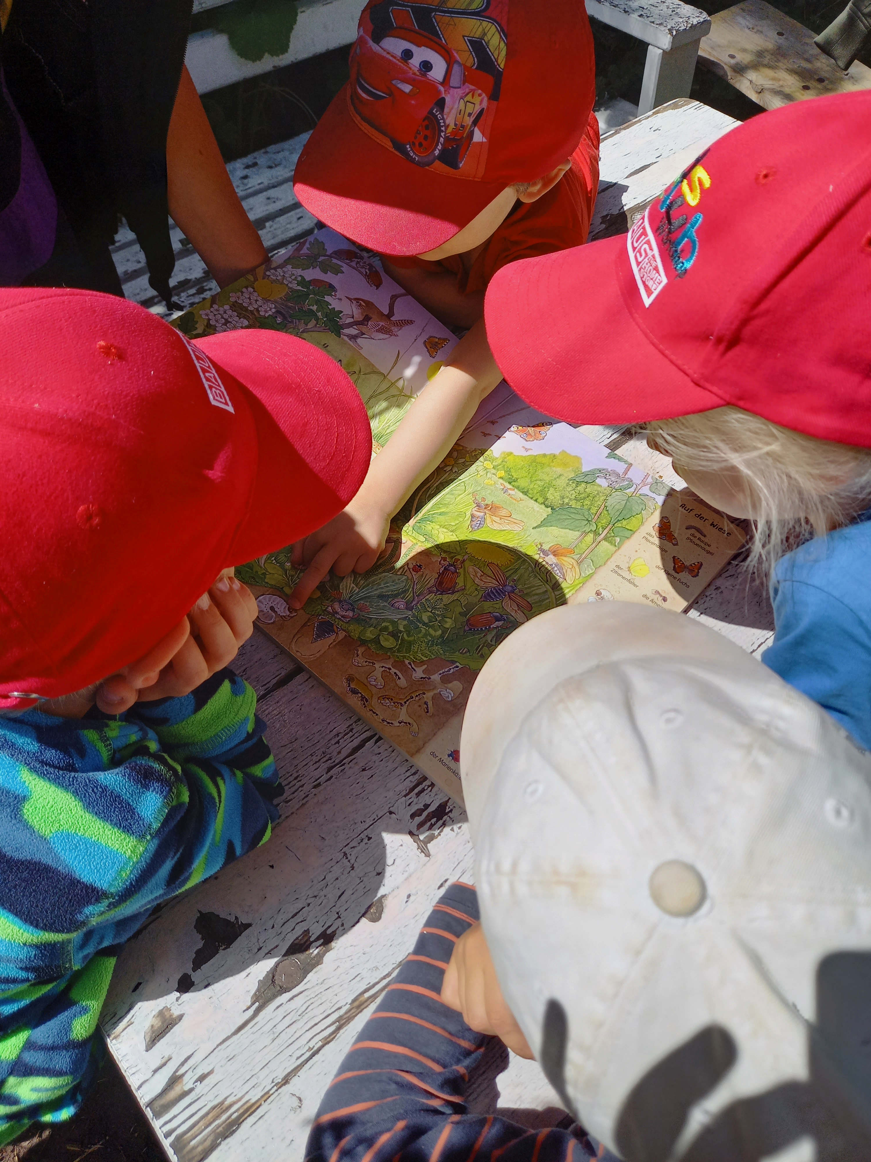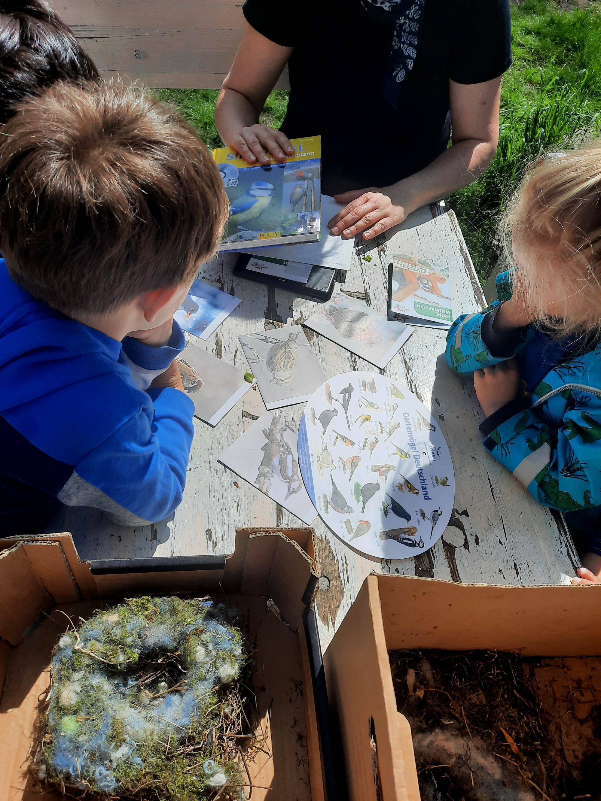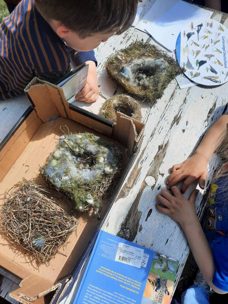 Gemeinsam mit den Kindergartenkindern, die regelmäßig zu uns in den Garten kommen, schauen wir uns unsere Gärtenvögel in diesem Jahr noch etwas gemauer als sonst an.