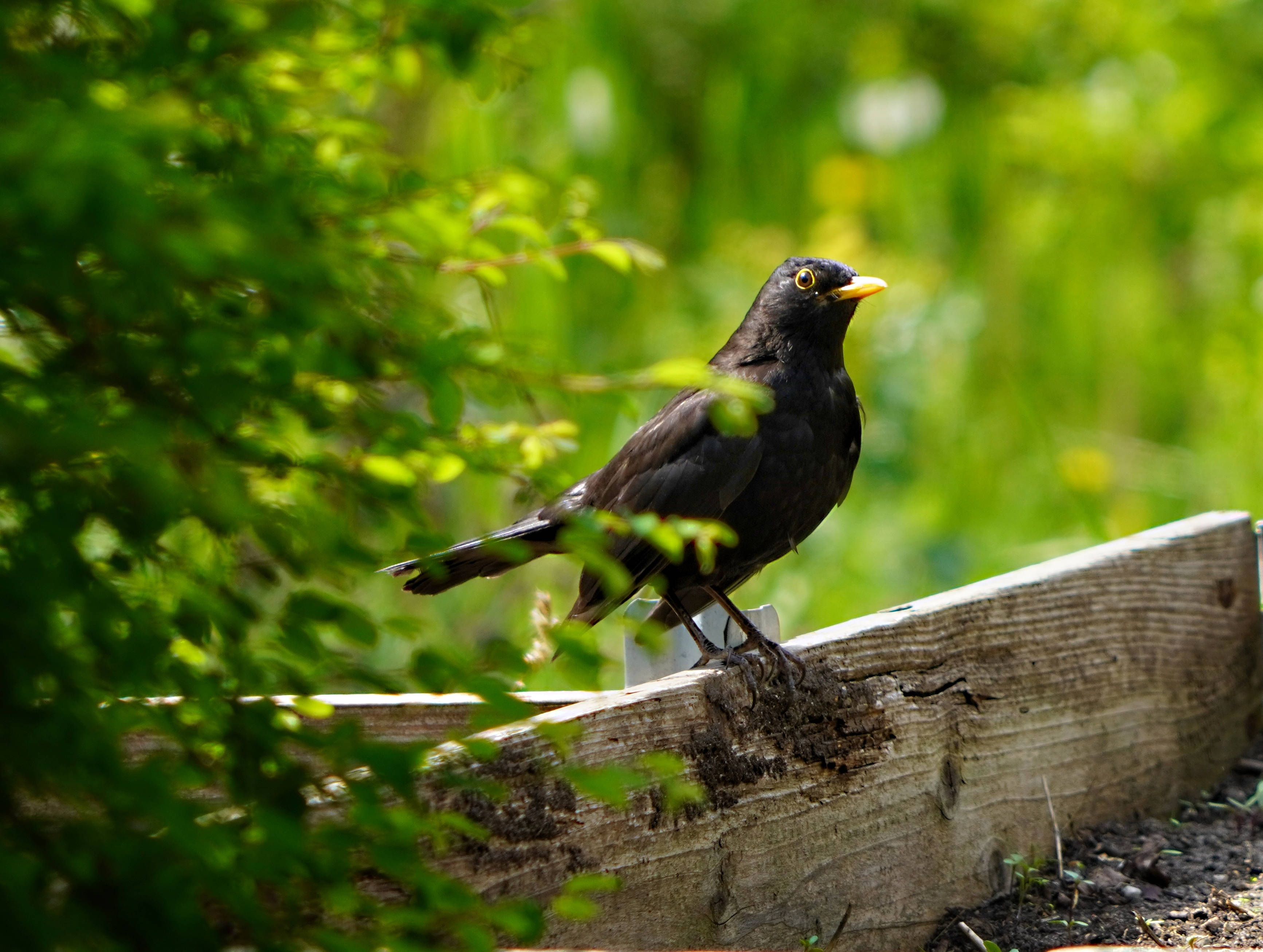 Und daher lässt sich dann später, beim Gießen unserer Gemüse dann doch noch Herr Amsel blicken, der genau weiß, dass die Würmer im feuchten Boden besser zu finden sind.