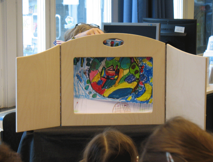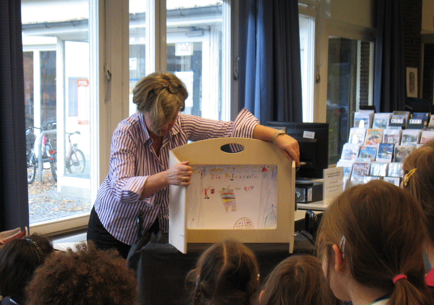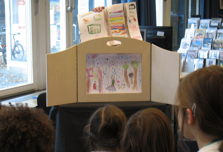 Der erste Kamishibai-Workshop im Rahmen der Projektarbeit der Grünen Bibliothek wurde gemeinsam mit der JüL-Klasse von Frau Janzen aus der benachbarten Allegro-Grundschule durchgeführt.