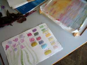 Schon bald konnten wir erste Farbtöne ausprobieren, erst einmal auf Papier.