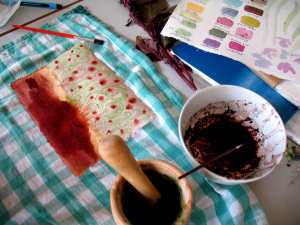 Veröffentlicht: September 12, 2018 Abgelegt unter: Kinder im Garten, Workshops | Tags: Bibliothek Tiergarten-Süd, Färberpflanzen, Gemeinschaftsgarten wachsenlassen, nachhaltiges Wirtschaften, Urbanes Gärtnern, Werken mit Kindern Hinterlasse einen KommentarErstes Malen mit Färberpflanzen aus unserem Garten: