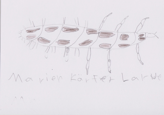 Und eine Marienkäferlarve, die wirklich nicht wie ein Marienkäfer aussieht, die aber, besonders in ihrem letzten Stadium, ganz, ganz viele Blattläuse frisst.