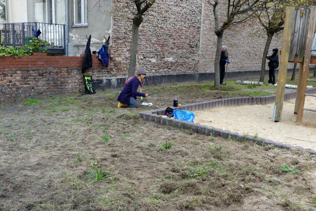 Vor der Aussaat ging es erst einmal ums Entmüllen und Säubern. Danach haben wir den Boden vorsichtig aufgeraut und die Gründüngung ausgebracht.