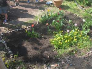 Ebenfalls ein buntes blühendes Blumenbeet ensteht durch die Kindergartenkinder der Gruppe Cocorico & Co e.V., die schon seit Jahren in unserem Garten mitmachen.