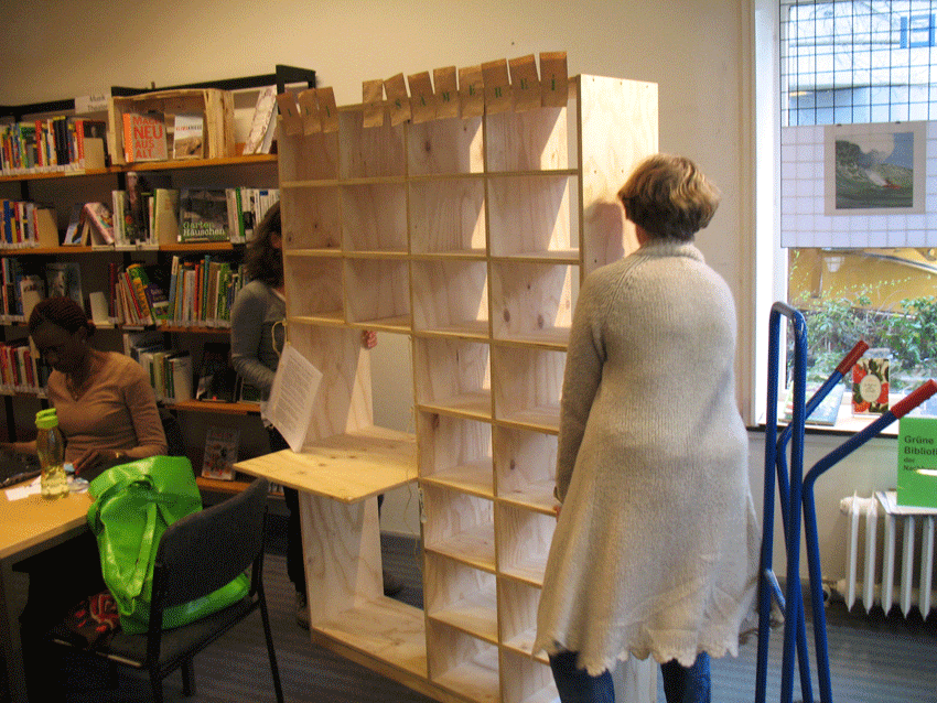 Veröffentlicht: März 22, 2016 Abgelegt unter: Die Grüne Bibliothek | Tags: Artenvielfalt, Bibliothek Tiergarten-Süd, Garten in der Stadt, Gemeinschaftsgarten, Gemeinschaftsgarten wachsenlassen, gesunde Ernährung, Grüne Bibliothek, Leih-Sämerei, Saatgut, Saatgut-Tauschbörse, Urbanes Gärtnern Hinterlasse einen KommentarSeit gestern, den 21. März 2016 befindet sich unsere LeihSämerei nun im Projektraum der Grünen Bibliothek der Nachbarschaft / Gemeinschaftsgarten wachsenlassen.