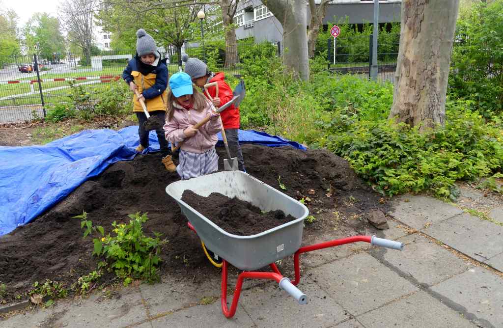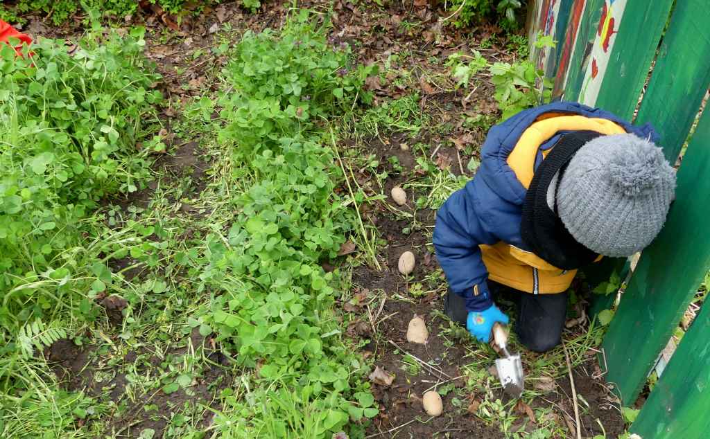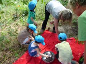 Dabei wird auch viel für Ausbildung der Grob- und Feinmotorik getan: wir schaufeln und hacken und die Kinder lernen, wie sie mit Spaten und Grabegabel umgehen können.