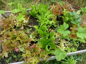 Unser Salat nach der Aussaat und zur Erntezeit.