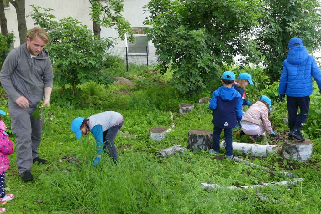 Mit den Kindergartenkindern, die zu uns in den garten kommen, entdecken wir gemeinsam die Stadtnatur auf dem schönen Außengelände des Kiez Zetrums Villa Lützow und pflegen die uns zugeteilten Bereiche.