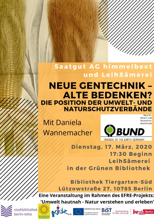 Veröffentlicht: März 10, 2020 Abgelegt unter: Die Grüne Bibliothek | Tags: Artenvielfalt, Ökologie, Bibliothek Tiergarten-Süd, Biodiversität, Gentechnik, Grüne Bibliothek, Leih-Sämerei, Saatgut, Saatgut-AG 3 KommentareDie Info zum ausdrucken: GentechnikVortragBUNDSaatgut-AG 3.20