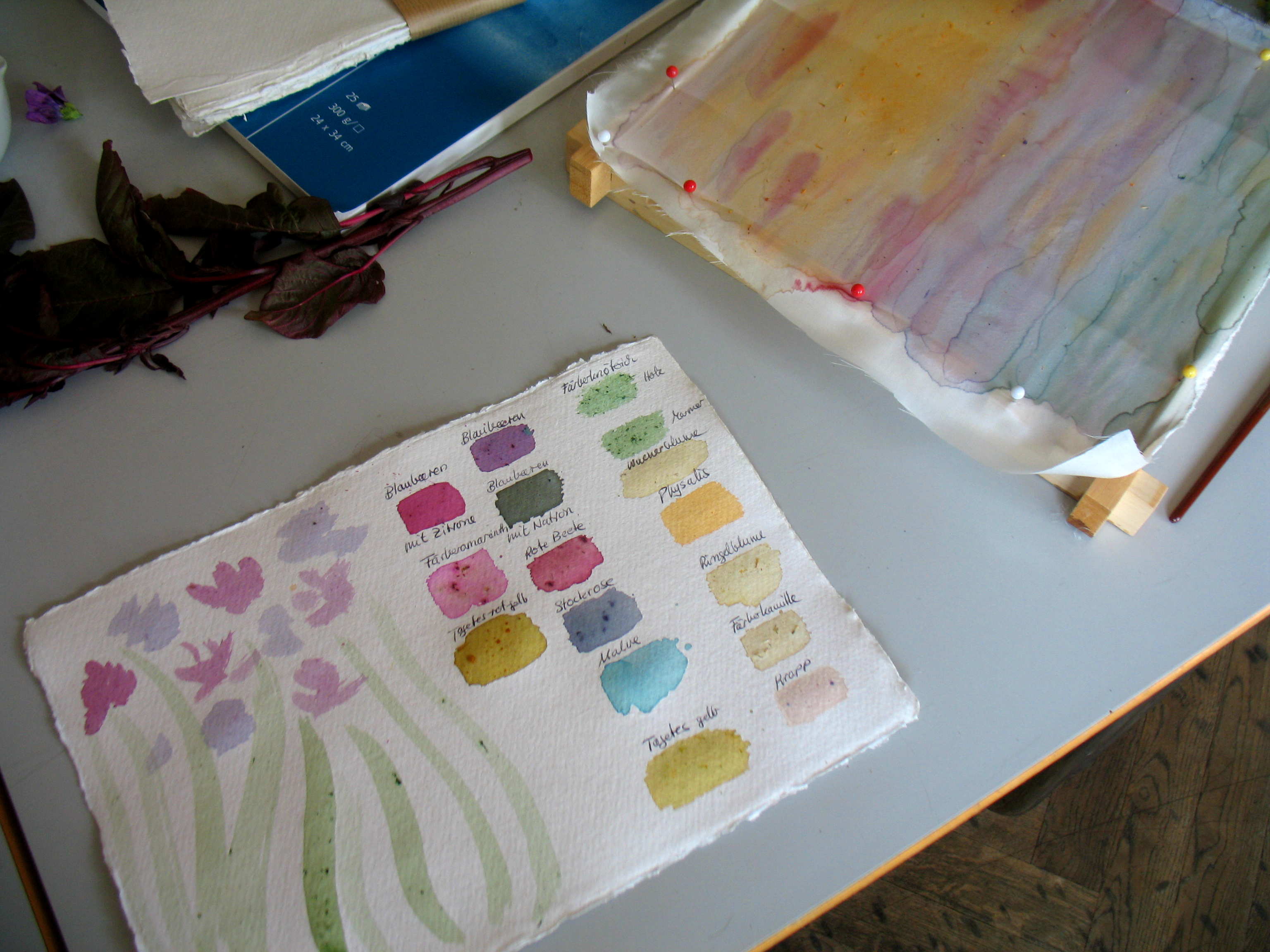 am 12.9. und 19.9., Donnerstag Nachmittag 16.00, findet gemeinsam mit dem Familienzentrum Villa Lützow ein ‚Malen mit Färberpflanzen‘ Workshop statt.